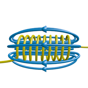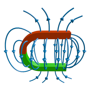 Analog zu den elektrischen Feldern existieren in der Umgebung von Magneten magnetische Felder. Die folgenden Abbildungen zeigen 3D-Ansichten eines Stab- und eines Hufeisenmagneten. Die magnetischen Felder sind durch Feldlinien (blau) gekennzeichnet.