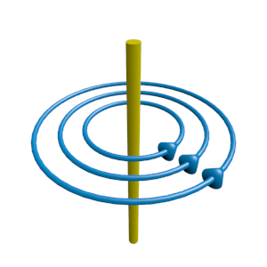 Man kann die Richtung des Feldes um einen stromdurchflossenen Leiter mit der Linken-Hand-Regel bestimmen.